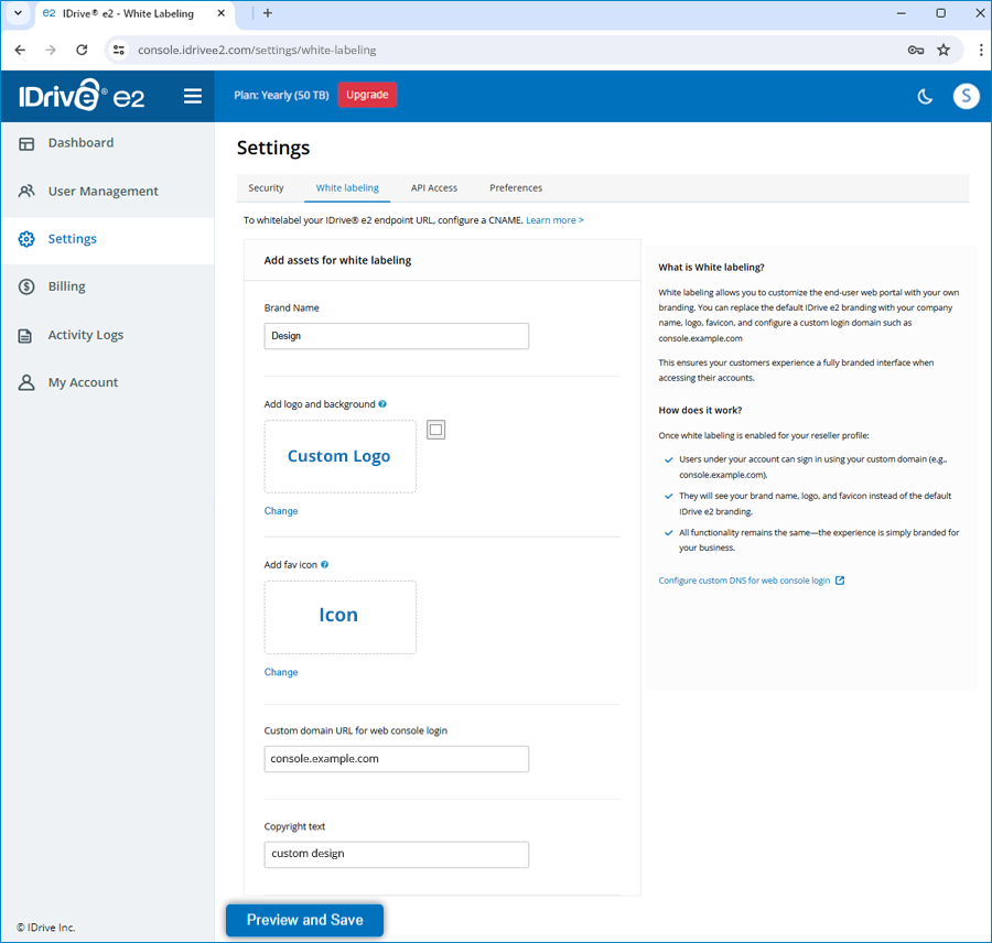Can I white-label my IDrive® e2 storage?
